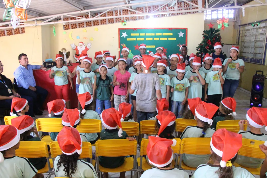 Cerca de 51 alunos da Escola escreveram cartinhas e foram contemplados com presentes, entregues pelo Papai Noel dos Correios.