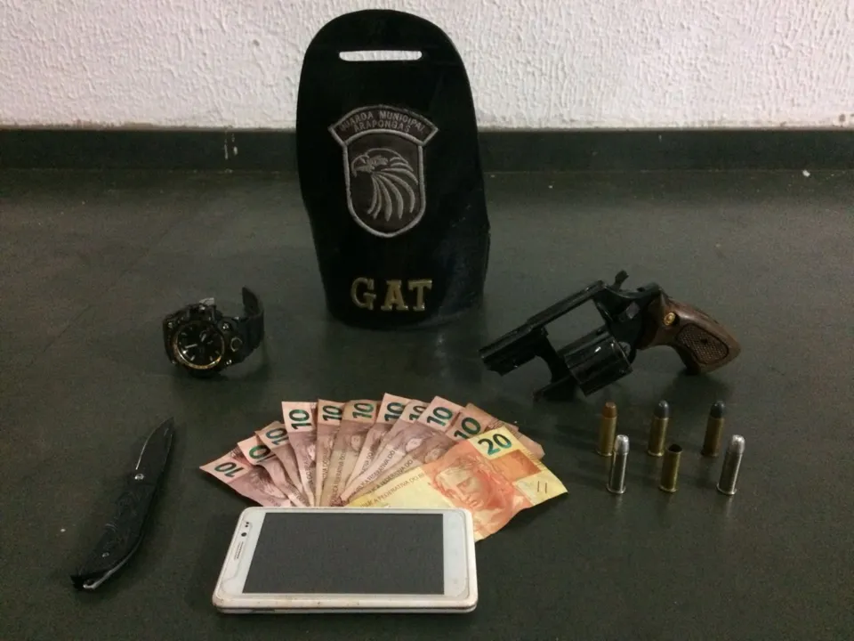 Três suspeitos de assalto foram presos na sexta-feira (15), em Arapongas. Com eles foram apreendidos dinheiro, objetos roubados e a arma usada na ação.