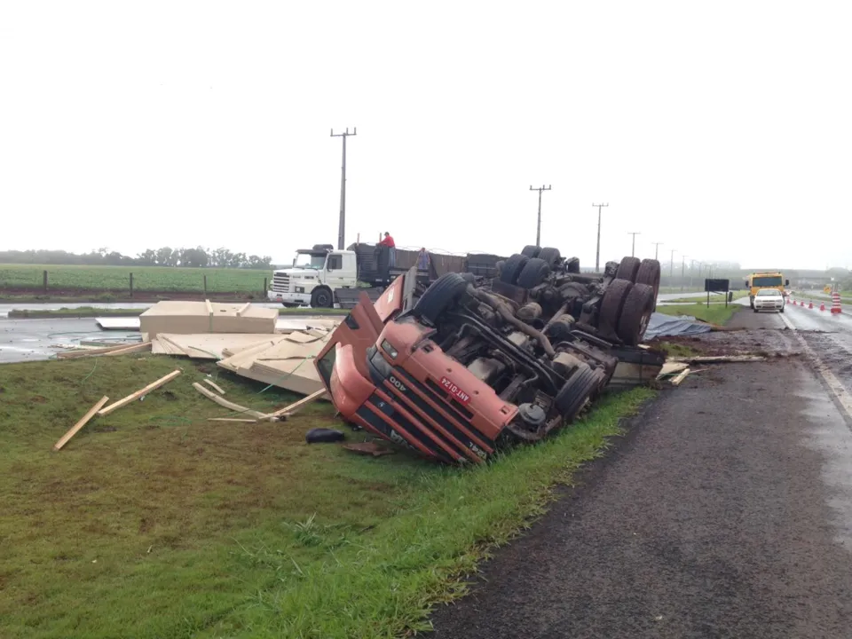 De acordo com a Polícia Rodoviária Federal (PRF), a carreta Scania modelo 124 L placas ANT-0124, de Pien (PR), estava carregada com madeira para fabricação de móveis e trafegava no sentido Apucarana/Arapongas quando ficou desgovernada e capotou. Chovia no momento do acidente.