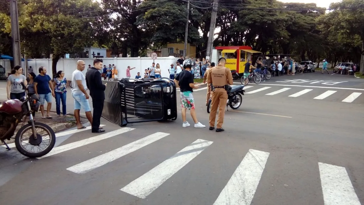 Moto pilotada por menor em fuga colide contra carrinho de levar caixões funerários