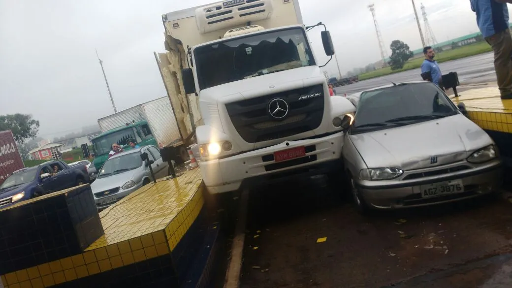 Caminhão com pane no freio bate em carro na praça de pedágio da BR-369