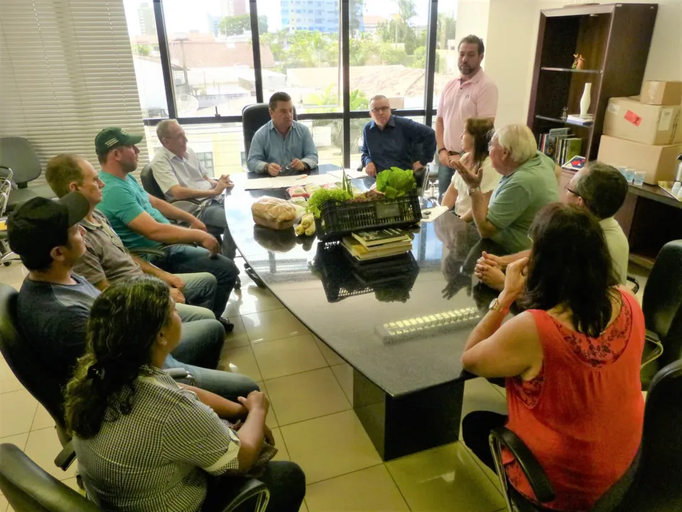 Participaram da assinatura do documento o prefeito Sergio Onofre, Luiz Fedrigo, da Associação dos Produtores, Alencar Hermes, presidente da COPRAN e representantes dos grupos formais, durante reunião que também contou com a presença do secretário de Educação Paulo Valério e Marta Pilatti, gerente da Central de Merendas do município.