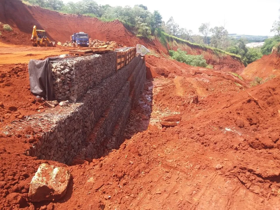 Conforme a Secretaria de Obras, já foi executada 35,58% da construção do muro de gabião.