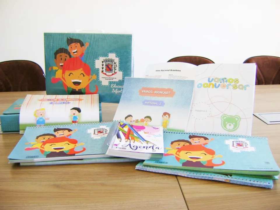 A Secretaria de Educação está promovendo a entrega de material didático para alunos que frequentam salas de Educação Infantil da Rede Municipal de Ensino, com kit composto de apostila, material de apoio, jogos, uma agenda e um exemplar do livro “Vamos Conversar”, da Editora Universo, com textos direcionados para as famílias.