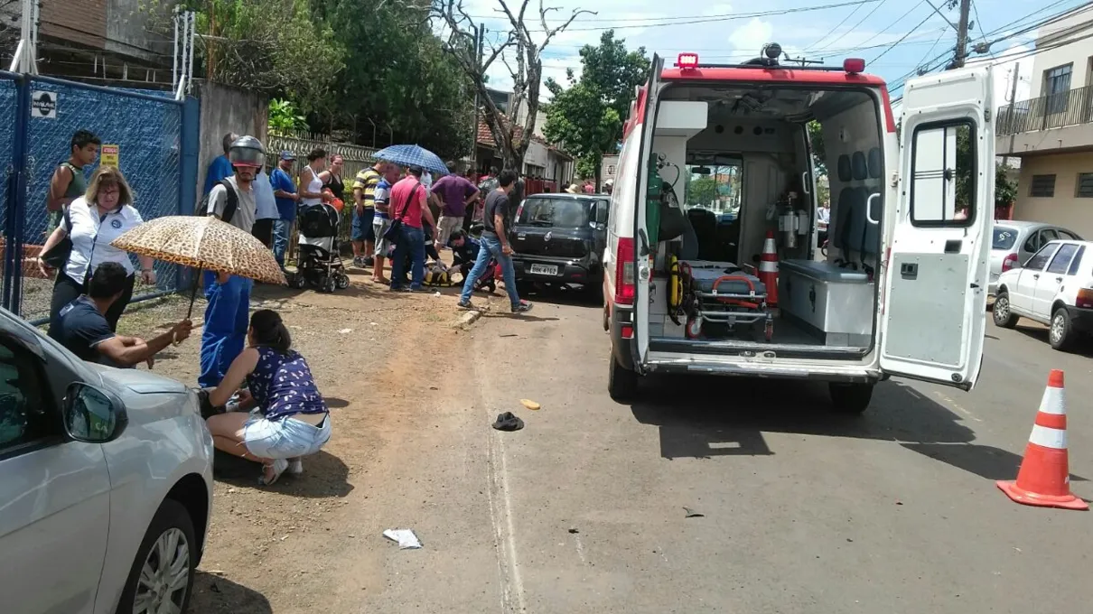 Duas pessoas ficaram feridas após um acidente na tarde desta terça-feira (13), em Arapongas. A colisão entre o carro e uma moto aconteceu na Avenida Maracanã, na altura da Rua Apterix.