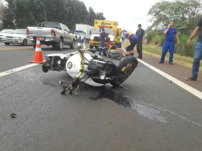 O motociclista foi socorrido com ferimentos leves pela ambulância da Viapar com apoio do Serviço de Atendimento Móvel de Urgência (Samu) e encaminhado ao hospital.