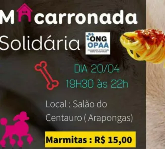 A Organização Protetora dos Animais de Arapongas (OPAA) realiza nesta sexta-feira (20) uma macarronada beneficente em prol da entidade. A ONG mantém atualmente centenas de animais, entre cães e gatos, que foram tirados da rua, de situações de risco e maus-tratos.