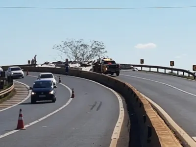 Ninguém ficou ferido, mas o trânsito está impedido. A Polícia Rodoviária e a Viapar estão no local adotando os procedimentos para liberar a pista.