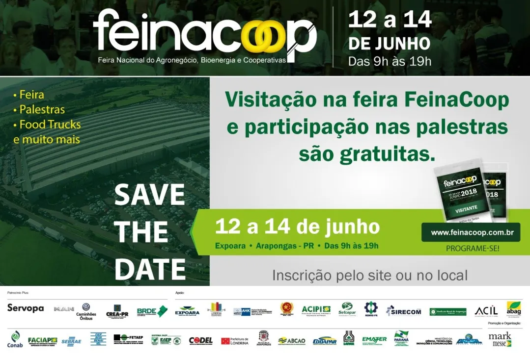 Arapongas recebe nos dias 12, 13 e 14 de junho a Feira Nacional do Agronegócio, Bioenergia e Cooperativas (Feinacoop), no Centro de Eventos Expoara.