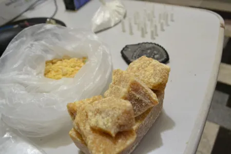 A Polícia Militar (PM) localizou o suspeito após receber denúncias anônimas sobre tráfico de drogas. Durante buscas no local, a PM encontrou 20 pinos cheios de cocaína, 118 gramas da mesma droga e 459 gramas de crack (que renderia aproximadamente 1,4 mil pedras).