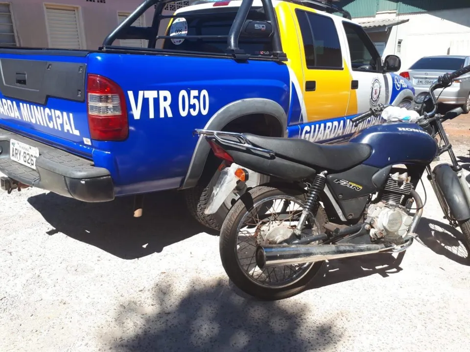 Após denúncia na central da Guarda Municipal informando que uma moto suspeita se encontrava há tempos na Rua Araçari-de-Crista, a equipe foi até o local verificar a situação. A moto Honda, modelo Fan, de cor azul foi encontrada com o chassi e a numeração do motor raspados e sem placa identificadora.