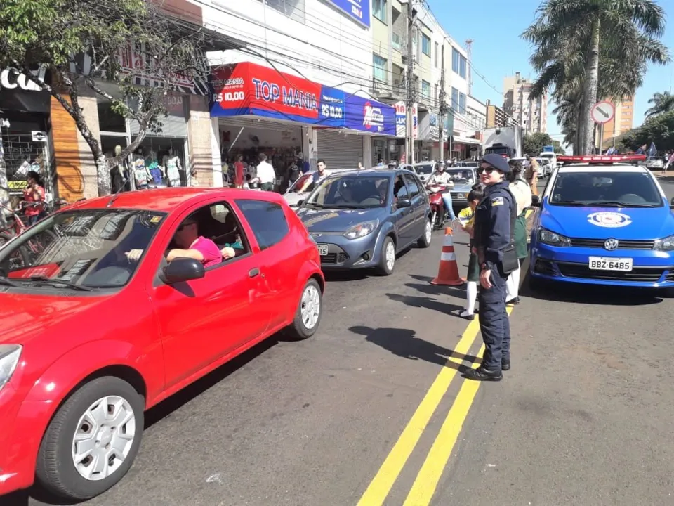Em continuidade com a programação da Semana Nacional do Trânsito, cujo tema é “Nós Somos o Trânsito”, a Polícia Militar, Guarda Municipal e Grupo de Exploradores Feras do Sul, realizaram na manhã do último sábado (22) uma blitz educativa na Avenida Arapongas, em frente à Igreja Matriz.