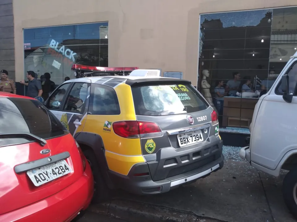 Uma viatura da Polícia Militar (PM) que transportava um suspeito se envolveu em um acidente de trânsito na manhã desta segunda-feira (26) no centro de Arapongas. Cinco pessoas ficaram feridas.