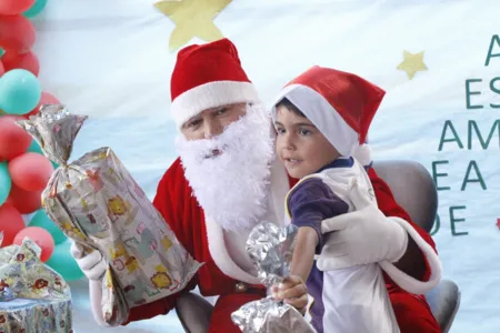 Neste ano a campanha adotou “cartinhas do Papai Noel” de alunos da Escola Municipal Rural José Monteiro, cuja entrega dos presentes aconteceu nesta segunda-feira, dia 26, com a presença do “Bom Velhinho”, do vice-prefeito Jair Milani, representando o prefeito Sergio Onofre, de secretários municipais, do gerente da agência dos Correios, Jurandir Duarte e representantes do Judiciário local, na pessoa da Juíza da Vara da Família, Infância e Juventude, Tatiane Garcia Silvério de Oliveira Claudino.