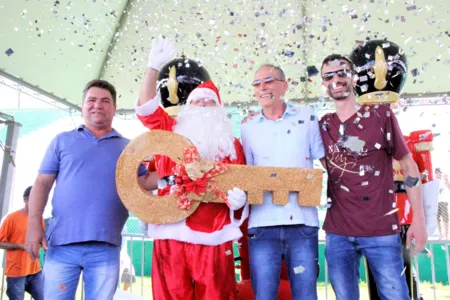 O prefeito Sérgio Onofre, e também o vice-prefeito, Jair Milani, receberam o Noel para a entrega da “chave da cidade”.