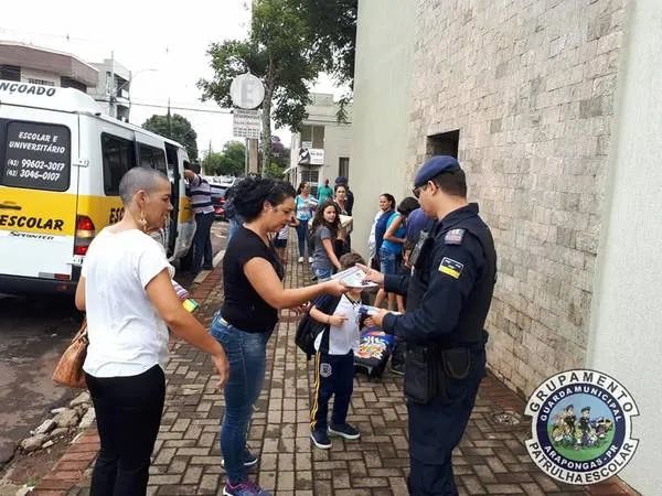 Na entrada ou saída das aulas, um grupo de guardas municipais distribui panfletos com dicas de segurança que devem ser utilizadas dentro e fora de sala e que incluem medidas relacionadas ao trânsito, como a importância do uso de cinto de segurança ou cadeirinha para carros, atenção e respeito para melhor fluidez do trânsito em frente às instituições de ensino, bem como de segurança pessoal para as crianças. Os guardas orientam os alunos, por exemplo, a não conversar ou aceitar nada de pessoas desconhecidas, a caminhar sempre pela calçada e não próximo ao meio-fio, bem como a respeitar os colegas e professores, evitar o percurso casa/escola por locais escuros e sem movimento, entre outros.