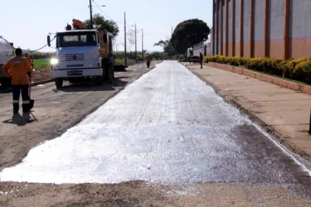 Ruas da Zona Sul e Jardim Colúmbia recebem lama asfáltica em Arapongas