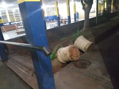 Os vândalos destruíram vasos de plantas, quebraram vários galhos de árvores e reviraram as mesas e bancos do refeitório das crianças.