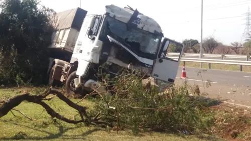 Caminhão sai da pista e arranca árvores em Aricanduva