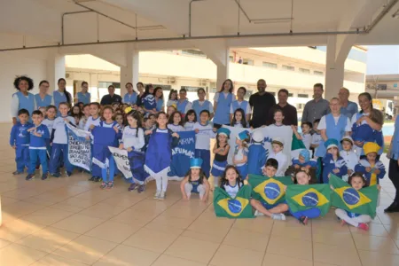 Alunos e professores do Centro de Educação Infantil Maria Fumaça fizeram uma visita ao Paço Municipal, onde foram recebidos pelo prefeito Sérgio Onofre, secretários municipais e pelos vereadores Levi Xavier e Márcio Nickenig. “Com a chegada do dia 07 de Setembro, procuramos mostrar aos nossos alunos a importância de se cultivar o patriotismo. Assim, realizamos, no dia 06, uma super aula com a professora Mariana, tendo como tema a Independência do Brasil e mostrando como esta data é importante para nossa nação”, relata a diretora Flávia Frezarin. “Na sequência, nossos pequenos e professores, com uma escolta ilustre - nossas mamães, papais e avós amigos da escola - desfilaram com nossa Banda Mirim até o Paço Municipal. Além de passear, os alunos aprenderam a marchar e cantaram o Hino Nacional, fazendo a nossa parte em passar adiante patriotismo e respeito ao nosso Brasil”, acrescenta a diretora.