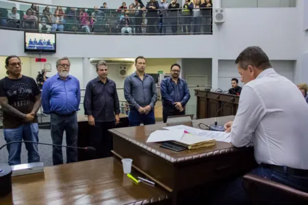 Foram afastados da sessão o próprio presidente do Legislativo, Osvaldinho, os vereadores Angélica Ferreira, Adauto Fornazieri (PSC), Toninho da Saúde (PHS) e Rubens Franzin Manoel (PP). Assumiram as cadeiras os suplentes Valdecir Tudino (PP), Paulo Roberto Boro (PSC), Edvaldo Zaramella (PSC), Osael Luiz da Rosa (PSC) e Evangelista Pereira da Silva (PHS), popular Lita.