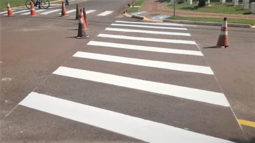 Ainda nesta quarta-feira (22), o novo trecho pavimentado da Rua Rouxinol - trecho entre o Parque Industrial XI até a entrada da Estrada da Colônia Esperança, a Diretran tem executado pinturas viárias, especificamente em frente ao acesso à Colônia Esperança, integrando o pacote de melhorias realizadas recentemente naquela região.