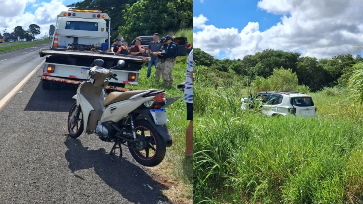 A colisão envolveu um Jeep Renegade, uma Honda Biz e um caminhão guincho