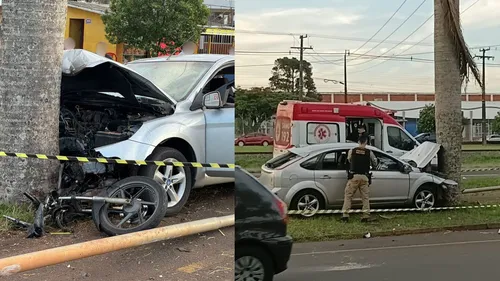 Um Ford Focus e uma motocicleta se envolveram em um acidente no fim da tarde desta sexta-feira (28), em Arapongas (PR). A colisão ocorreu na BR-369 e destruiu os veículos envolvidos.