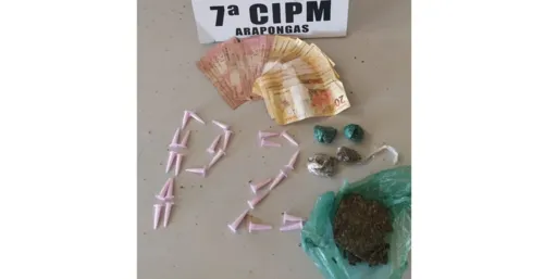 Dentro da sacola a PM encontrou 26 pinos com cocaína além de 86 gramas de maconha. No bolso do jovem foi localizado R$340. O jovem confessou que o valor era da venda de drogas.