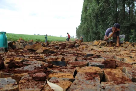 Avança pavimentação com pedras na Estrada Bandeirantes