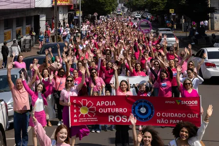 Centenas de pessoas participaram da caminhada de abertura oficial do Outubro Rosa, o mês de conscientização sobre o câncer de mama, que ocorreu no sábado (04), promovida pela Prefeitura de Arapongas, por meio da Secretaria Municipal de Saúde e Centro Integrado da Saúde da Mulher (Cisam). A concentração ocorre na Praça do Santuário Nossa Senhora Aparecida (Praça da Igreja Matriz), e o encerramento ocorreu na Praça Doutor Júlio Junqueira (Praça Mauá).