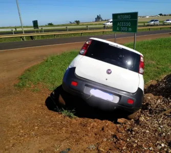 Um Fiat Uno que saía de uma estrada caiu em uma valeta às margens da BR-369, entre Apucarana e Arapongas. O que chama atenção, é que o veículo foi abandonado no local. A suspeita é que o acidente aconteceu na madrugada desta sexta-feira (22).