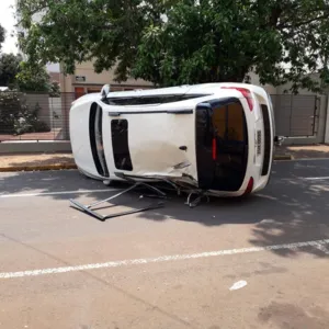 No local da batida existe um semáforo. A suspeita é que um dos carros não respeitou a sinalização. Após a batida aconteceu um capotamento. Apensar dos danos, ninguém ficou ferido.