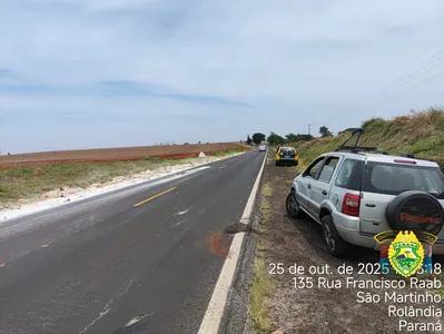 Um acidente envolvendo um carro de passeio e uma carreta carregada com farinha de trigo foi registrado no final da manhã deste sábado (25) na PR-170, em Rolândia (PR), de acordo com a Polícia Rodoviária Estadual (PRE). O sinistro, ocorrido na altura do quilômetro 70 da rodovia, resultou em danos nos veículos, mas ninguém ficou ferido.