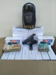 Conforme a PM, foi constatado que o local era um ponto de distribuição de produtos eletrônicos oriundos do Paraguai. Diversos eletrônicos foram apreendidos.