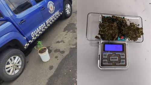 Durante a averiguação na casa, os agentes também localizaram o pé de maconha que estava sendo cultivado em um vaso, conforme a denúncia da vítima.