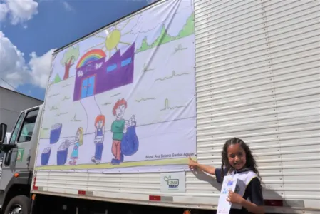 Desenhos de alunos premiados estampam caminhões da Coleta Seletiva