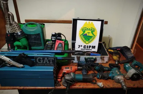 Após denúncias a PM junto com a equipe GAT da Guarda Municipal de Arapongas, realizaram abordagem do primeiro suspeito, na residência dele, foi encontrado várias ferramentas, entre elas, furadeiras, brocas, chaves em geral. Os objetos encontrados na casa se tratavam dos furtados.