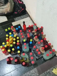 Os suspeitos estavam em cima do telhado de um estabelecimento que fica ao lado da cadeia, os homens tentaram fugir, mas sofreram uma queda. Os policiais encontraram no telhado, cinco celulares, carregadores, 18 energéticos e 49 bebidas alcoólicas. Os objetos estavam em duas mochilas.
