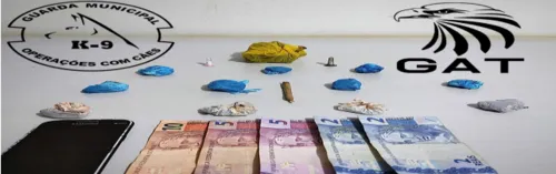 Em cima da estante, a GM ainda localizou mais porção de maconha, dois pinos com cocaína e dinheiro. Diante do fatos, o suspeito e o dono da casa foram presos e levados para a delegacia.