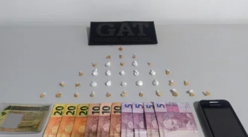 Conforme a GM, o rapaz, ao perceber a viatura, entrou no quintal da residência e jogou em um cano. A equipe encontrou, 12 porções de cocaína e mais 24 pedras de crack, toda a droga estava embalada e pronta para a venda, além de dinheiro, que seria do tráfico.