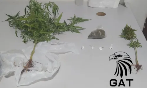 Já na casa de um dos suspeitos, a equipe do Canil da GM encontrou dois pés de maconha. Toda a droga foi apreendida e os homens presos.
