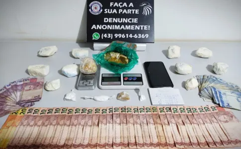 Diante do flagrante, o suspeito foi encaminhado para a delegacia de Arapongas. Todas as drogas e objetos foram apreendidos.