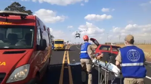 Um homem e uma mulher que estavam no Gol foram encaminhados ao hospital pelo helicóptero. Outra mulher foi levada para atendimento médico na ambulância do Samu.