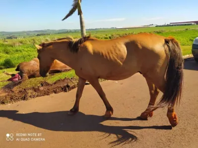 Como as condições apresentavam evidentes riscos de acidentes e já havia ocorrido o atropelamento e morte de uma égua prenha no local, foi adotado os procedimentos administrativos e encaminhamento dos animais para área autorizada pela Secretaria de Meio Ambiente, sem prejuízo de outras providências.