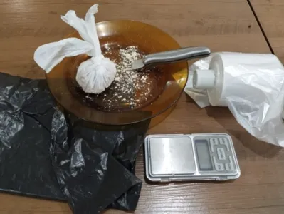 Durante buscas, na cozinha, foi encontrado um prato com várias porções de crack, além de caixas e galões com defensivos agrícolas. A PM também encontrou uma balança digital e vários rolos de embalagens plásticas utilizadas para embalar as drogas.