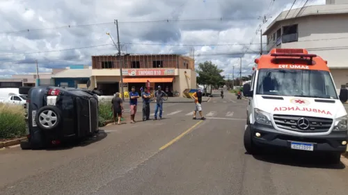Conforme testemunhas, após colisão entre dois veículos, um dos carros capotou. O homem foi socorrido e levado para a Unidade de Pronto Atendimento (UPA) com ferimentos leves.