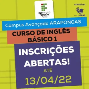 Nesta quarta-feira (06), por meio da Prefeitura Municipal de Arapongas, o Instituto Federal do Paraná (IFPR), campus Avançado Arapongas, informou que estão abertas as inscrições para o curso de inglês Básico.