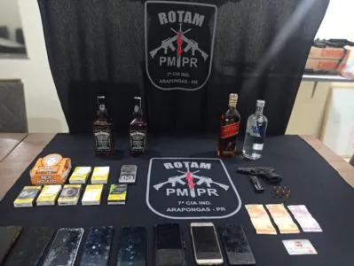 Segundo o boletim de ocorrências, eles foram abordados e na residência onde estavam, foram encontrados os diversos objetos que teriam sido roubados em Apucarana. Diante do fato, os três confessaram a pratica do roubo, sendo então dado voz de prisão. Perguntados sobre a arma utilizada, um dos homens contou que entregou para uma prima que morava nas imediações. Já na casa da mulher, ela teria negado a situação, até que finalmente os policiais localizaram a arma, que foi apreendida. A mulher recebeu voz de prisão pelo crime de posse ilegal de arma de fogo.