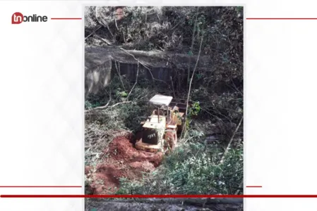 O motorista que estava operando a máquina contou que percebeu que a escavadeira apresentou problemas e conseguiu pular antes de cair na ribanceira.